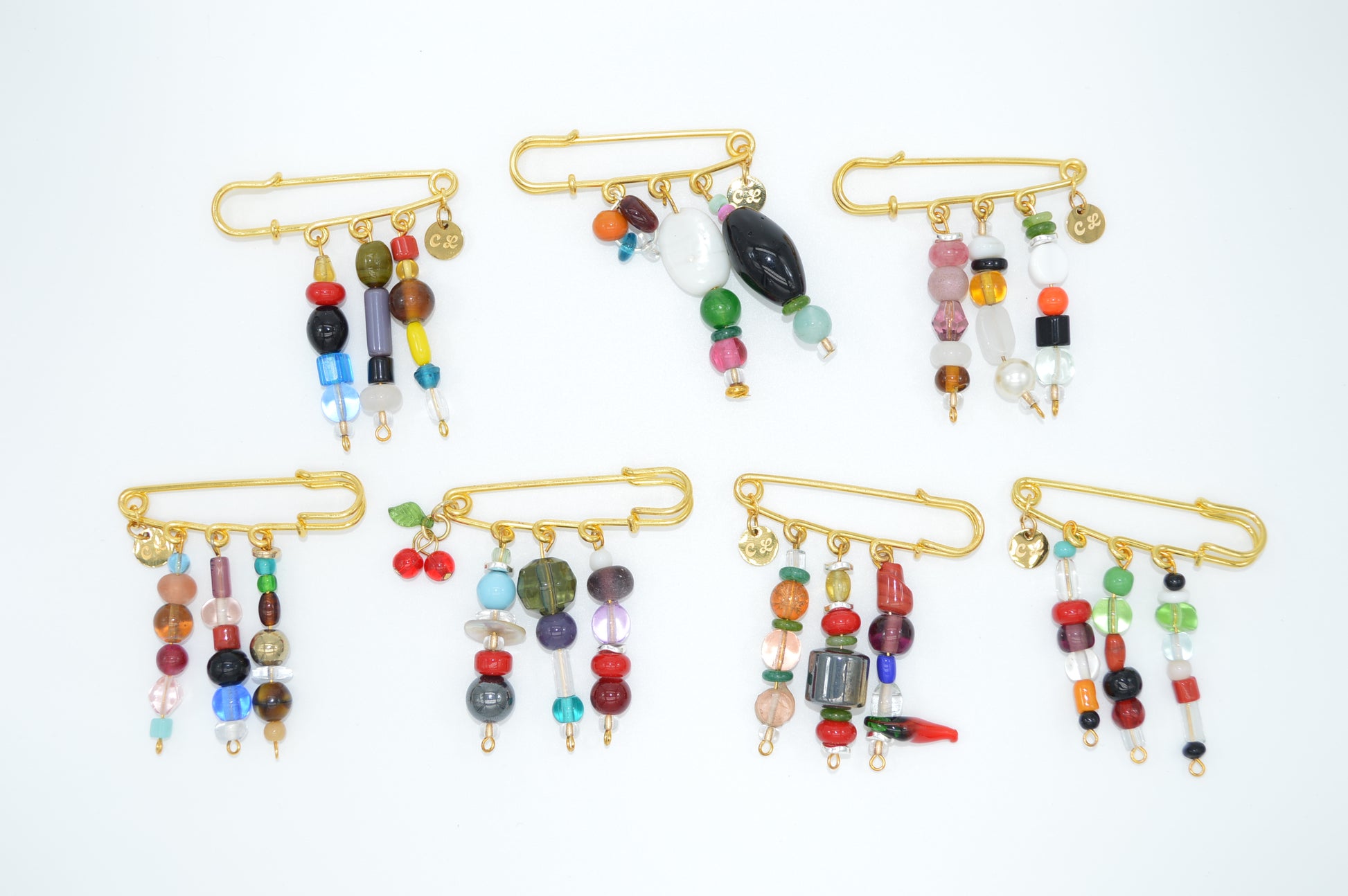 Small but loud. Le Brouche is a mixed-metal pin with hanging, colorful beads—handmade and one-of-a-kind. Lightweight, sturdy, and built to spark compliments.